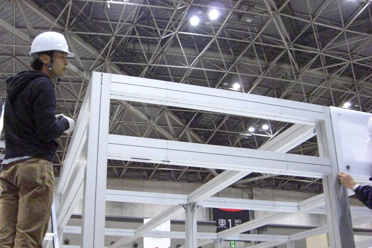 システムブースの素材の一つです。基本的な特長はオクタノルムと同じですが、オクタノルムよりも耐荷重に優れ、長いスパンでブースを構築できるので、木工造作よりも低価格で、規模が比較的大きな小間の装飾、ダイナミックな造作表現をしたい企業様に最適な材料です。開発元がオクタノルムと同じなので、オクタノルムと併用して使うことも可能です。